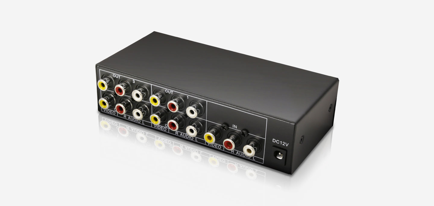 - Provides 4 sets of AV signal (RCA×3) output connectors.