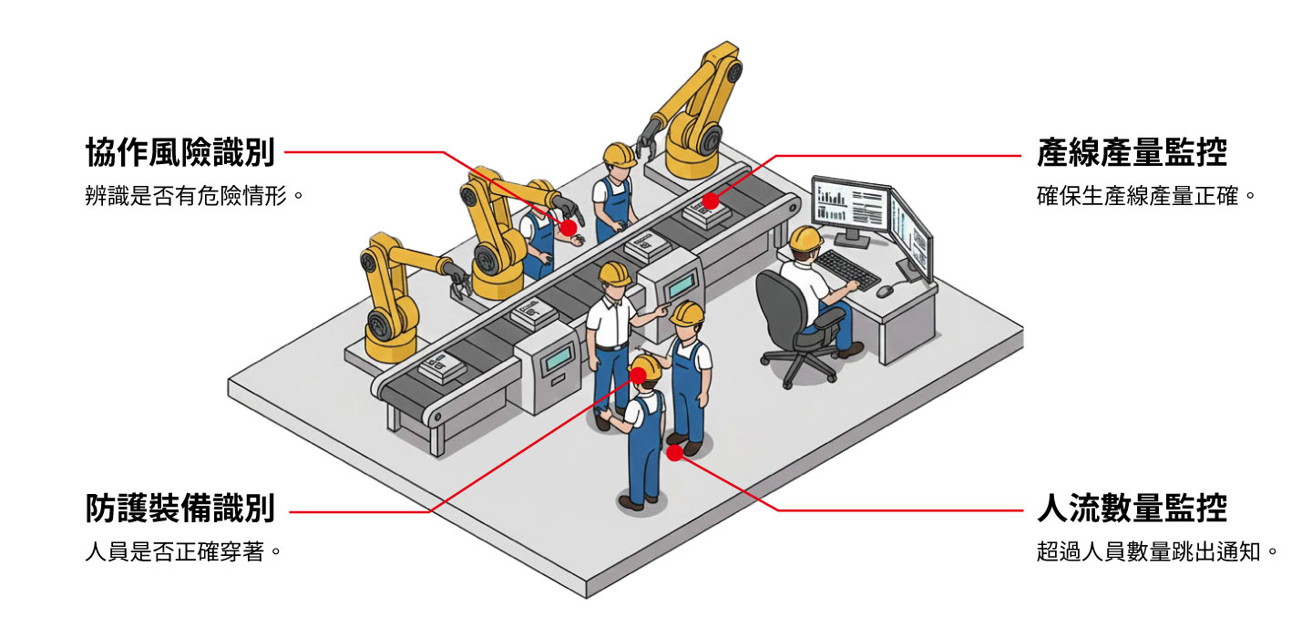 把「車、人、流程」納入同一套主動預警機制,提升場域下的安全與防護。