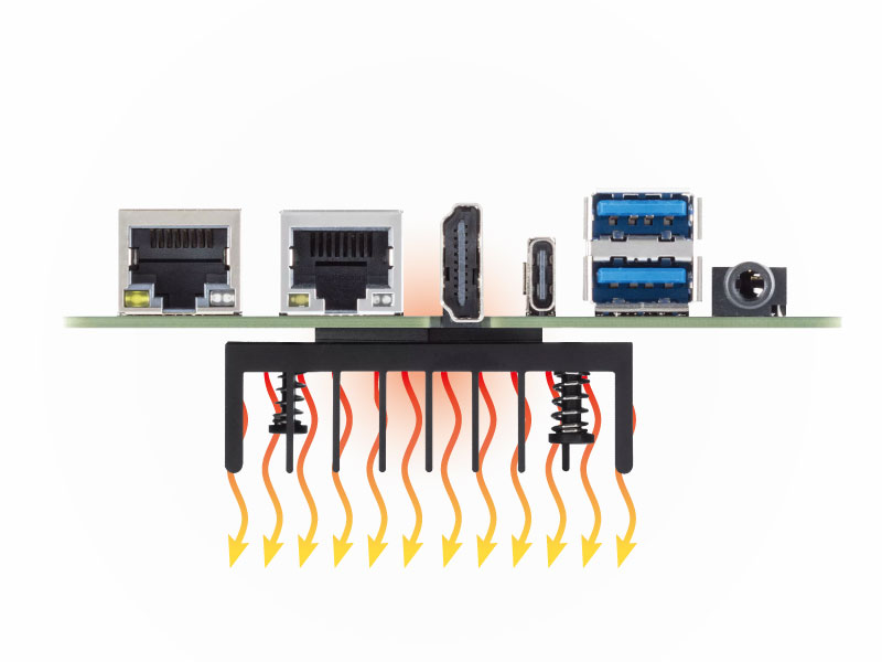 具散熱鰭片,可有效擴大散熱面積,強化自然對流散熱,使Tinker Board 3N長時間運作依然穩定可靠。