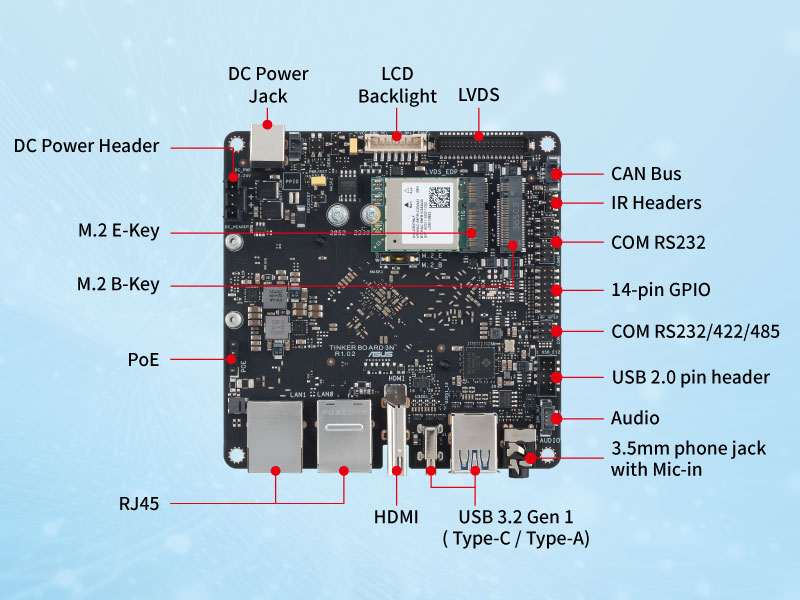 Tinker Board 3N 支援Linux Debian、Yocto與Android 作業系統平台,滿足不同開發環境需求,確保與軟體生態系統的相容性。。