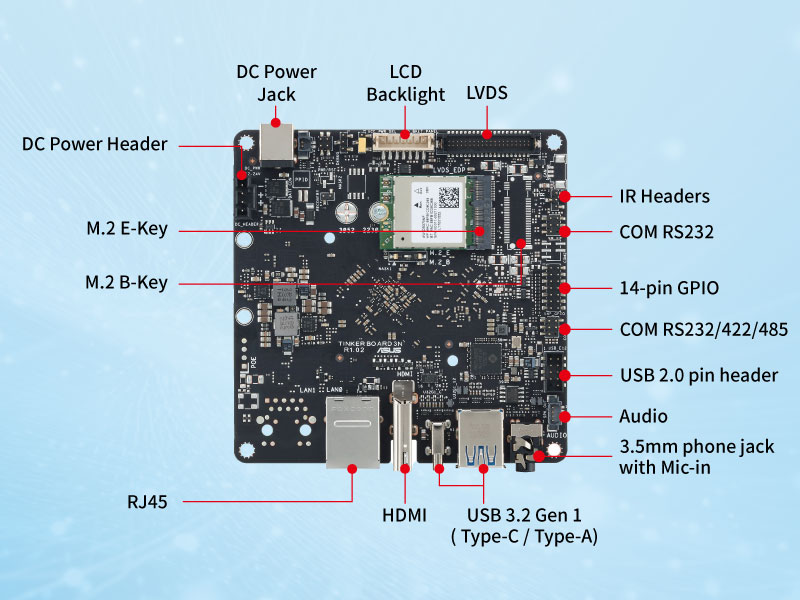 Tinker Board 3N LITE支援Linux Debian、Yocto與Android 作業系統平台,滿足不同開發環境需求,確保與軟體生態系統的相容性。。