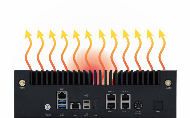 機身採類鰭片機構設計,可有效擴大散熱面積,強化自然對流散熱,使主機長時間運作依然穩定可靠。