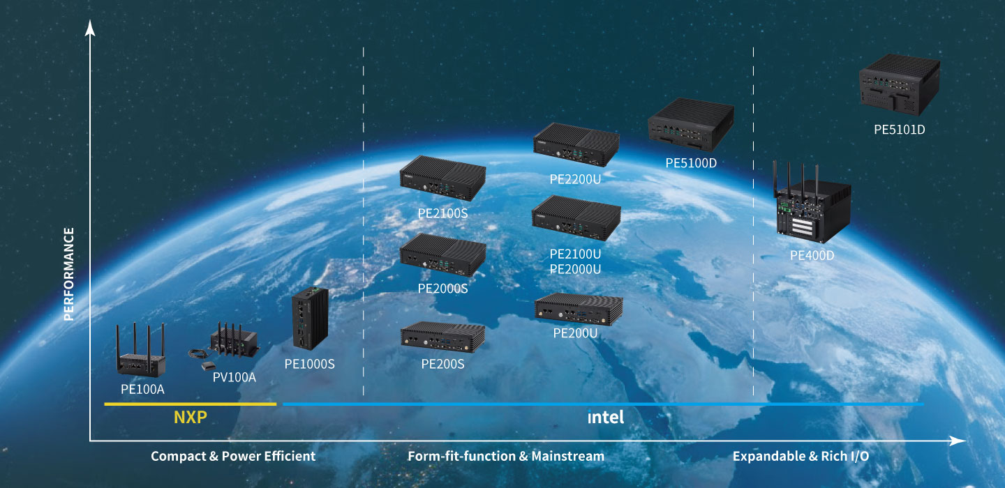 PE2100S符合MIL-STD-810H軍規抗震,採用寬壓、寬溫、無風扇設計,使主機於各式場域下,展現高效表現。