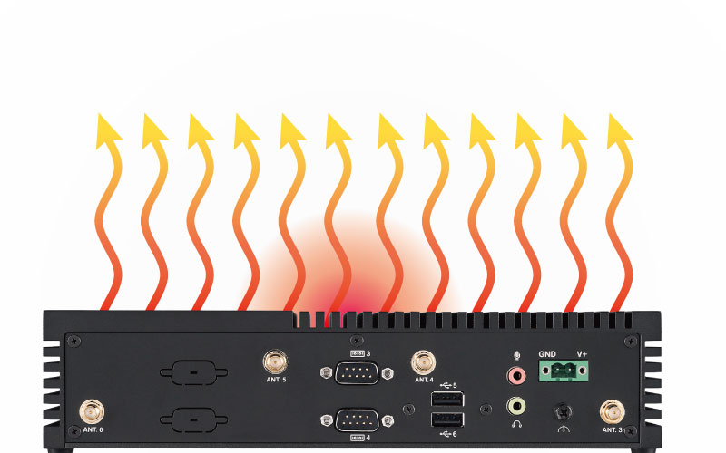 堅固的高效能無風扇邊緣電腦,卓越的散熱與電源設計,可在 -20°C 至 60°C 的環境以及 9 至 36V 寬廣的 DC 輸入電壓範圍內運作,機械設計符合 MIL-STD-810H 美國軍規測試標準,可承受各種衝擊和振動,適合智慧工廠、智慧運輸、資訊站...等嚴苛應用情境。