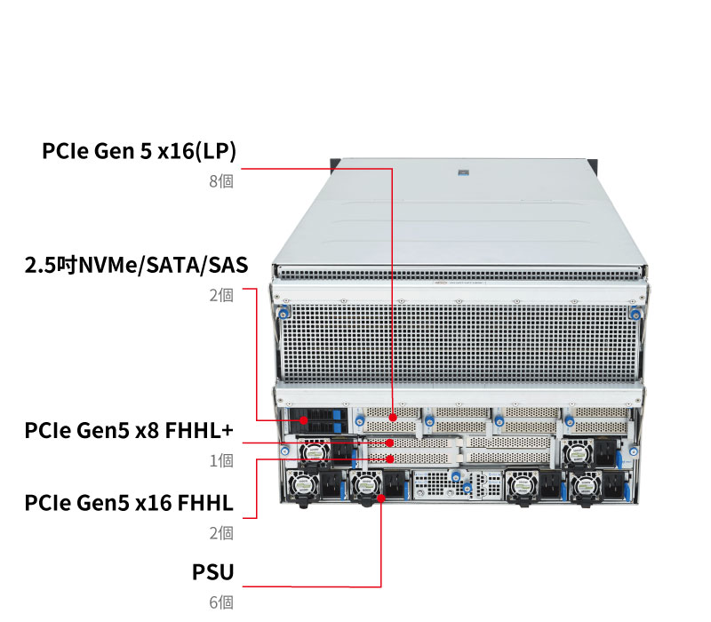 ASUS ESC A8A-E12U 是一款 7U 雙socket GPU 伺服器,搭載最新的 AMD EPYC™ 9005 處理器和 AMD Instinct™ MI325X 加速器。具有高記憶體頻寬和最佳化的電源效率,是高階 AI 訓練和大規模模型推論的理想解決方案。
