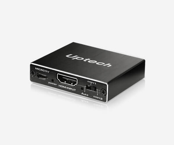 - 可連接1組HDMI來源訊號,同步輸出至2組HDMI顯示器,影音同步輸出不失真。