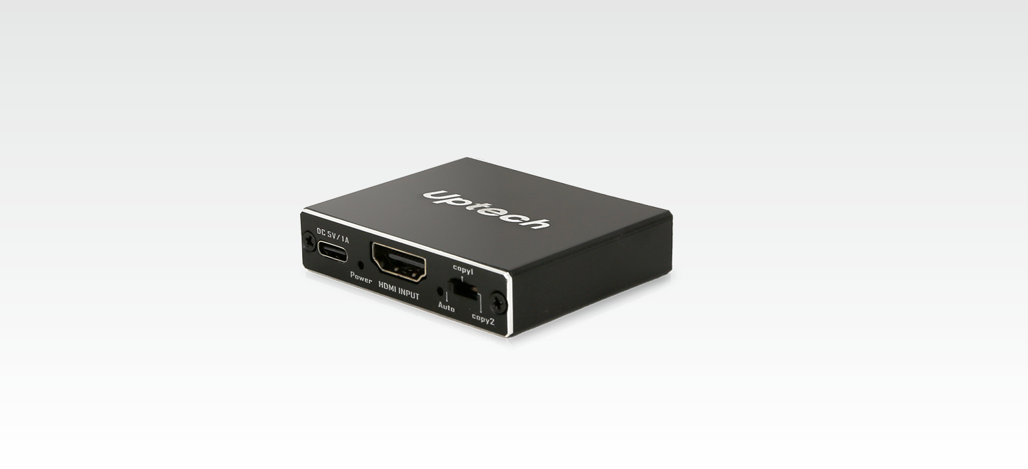 - 可連接1組HDMI來源訊號,同步輸出至2組HDMI顯示器,影音同步輸出不失真。