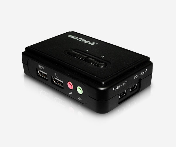 - 提供1組喇叭聲音輸出端子及1組麥克風輸入端子,可支援2台電腦共用1組喇叭及麥克風。