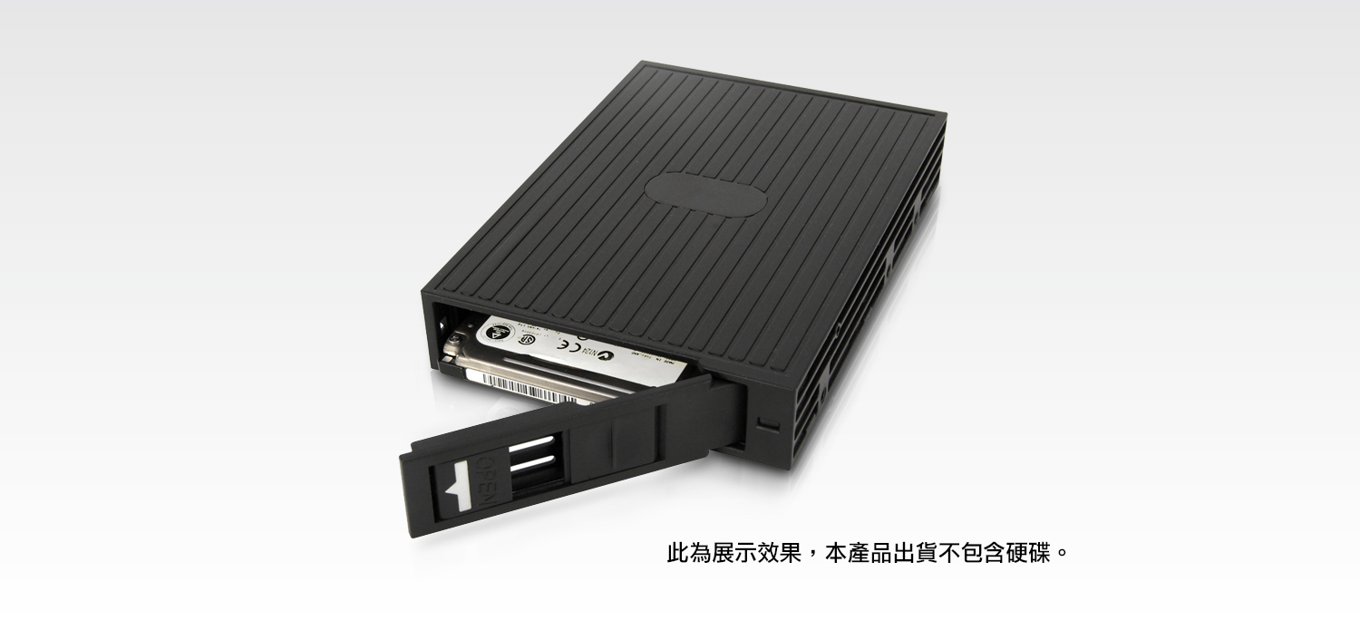 - 前置開啟功能,方便熱抽換硬碟,適用安裝於傳統軟碟機位置